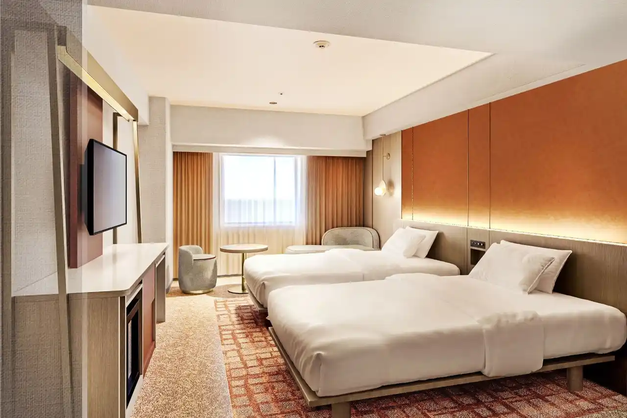 カップルやご夫婦におすすめの、ゆとりある広さで快適な滞在を叶えるツインルーム。キャナルシティ博多の渓谷をモチーフにしたデザイン空間で、優雅で落ち着いた滞在をお楽しみいただけます。 |