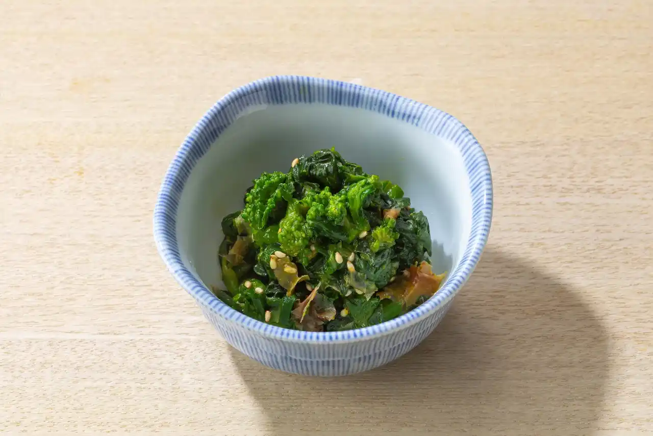 菜の花に、からしの香りを添えて。いつもの定食に、春の彩りをそっと添える小鉢です。 |