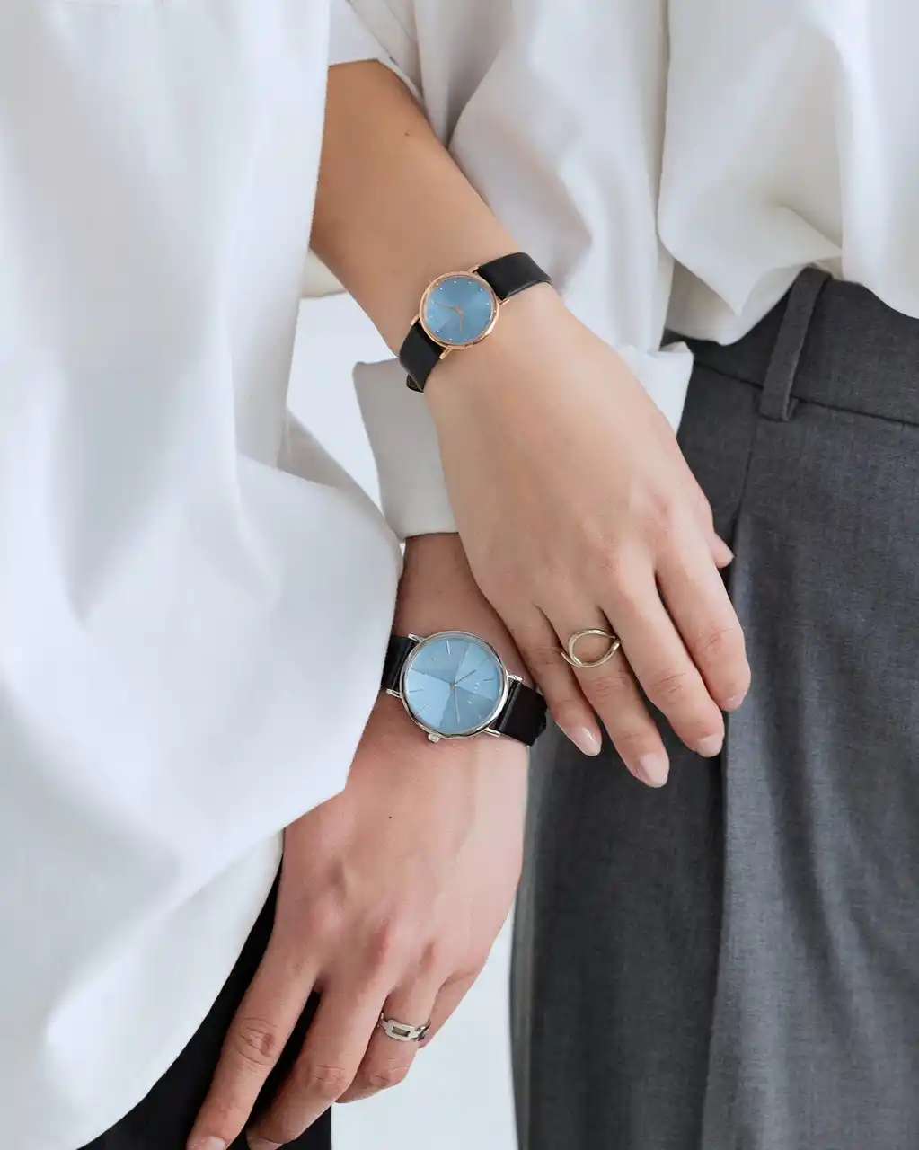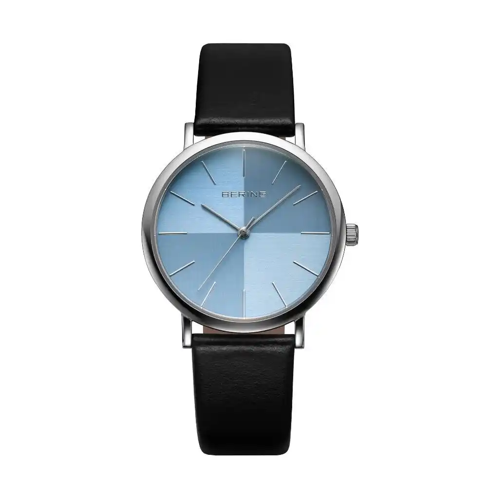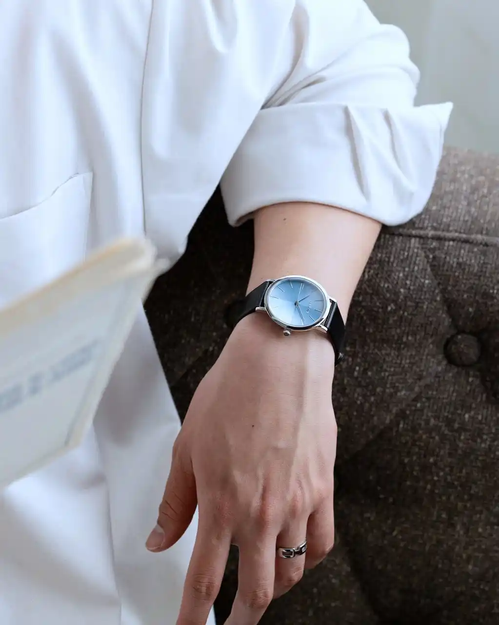 無駄のない必要最小限の要素で構成されながら、実用的かつ普遍的なデザインとして、2025年にグッドデザイン賞を受賞したブランドを代表するベーシックなモデルからアイスブルーカラーが登場。 ヘアライン加工を施したステンレススチールケースのクールな質感とアイスブルーのコンビが美しい1本です。 |