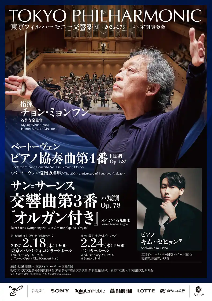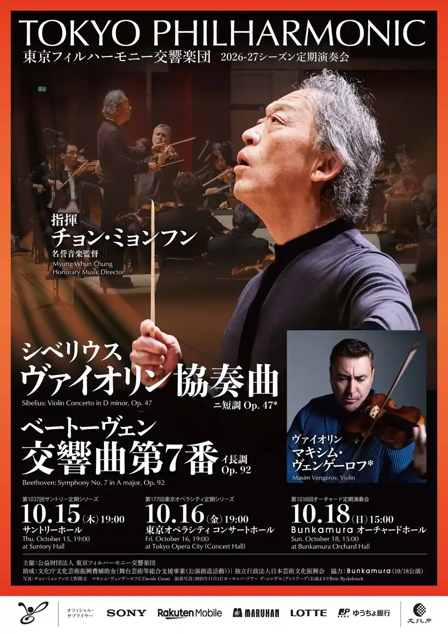 | 公益財団法人 東京フィルハーモニー交響楽団(以下、東京フィル/所在地:東京都新宿区、理事長:三木谷浩史)が、2026-27シーズン定期演奏会、下半期(2026年7月~2027年2月)の1回券の優先/WEB優先販売を開始いたします。 | |||||||||