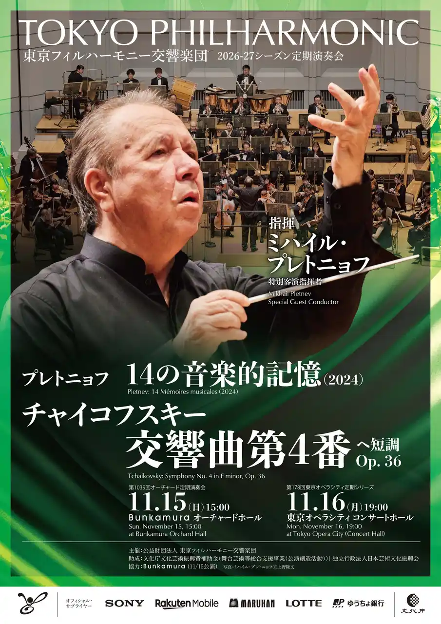 | 東京フィルハーモニー交響楽団、2026年7月~2027年2月の定期演奏会1回券を4月より発売開始。7月に開幕する東京オペラシティ定期シリーズはお得な定期会員券も発売中 |