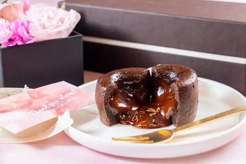 また、フォンダンショコラはしっとりと焼き上げており、ご自宅で温めることで中からチョコレートがとろけ出す、贅沢な味わいをお楽しみいただけます。 |