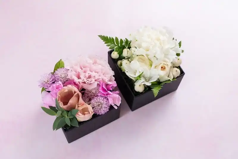 フラワーボックスは、ピンクとホワイトの2色から選べる仕様とし、贈る相手のイメージや好みに合わせてお選びいただけます。 |
