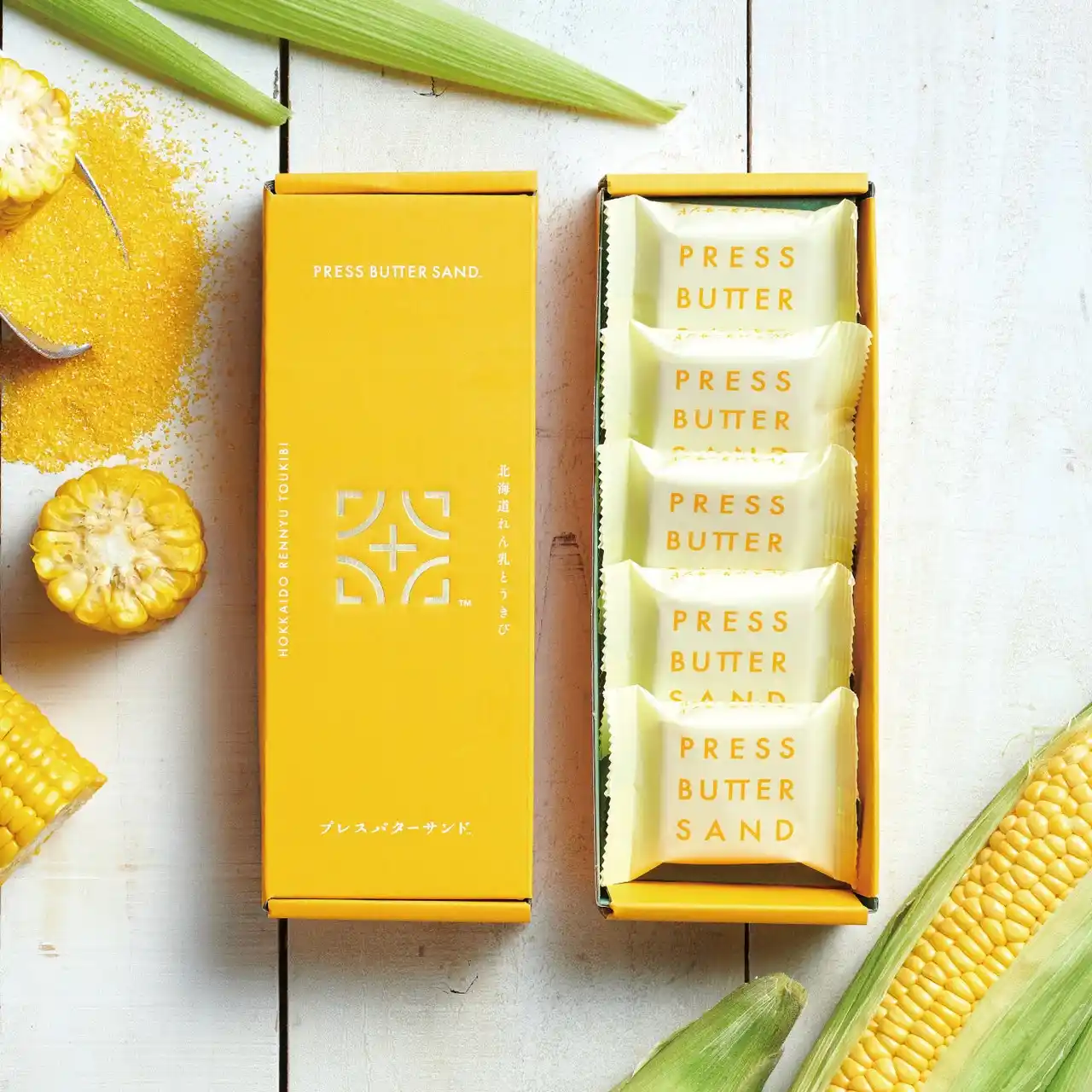 4月15日(水)~29日(水・祝)【新千歳空港限定】<PRESS BUTTER SAND>バターサンド 北海道れん乳とうきび1箱(5個入) 1,377円 |