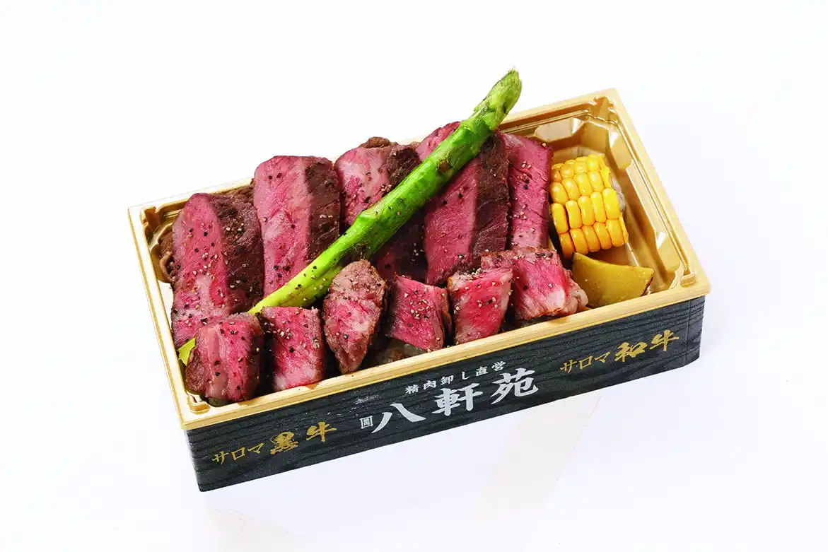 【うまぶしアスパラ使用】4月15日(水)~21日(火)【近鉄本店限定】【実演】札幌<八軒苑>サロマ和牛希少部位ステーキうまぶしアスパラ添え(かいのみ×中落ちカルビ×スキヤキ) 1折 3,240円円【各日限定数50】 |