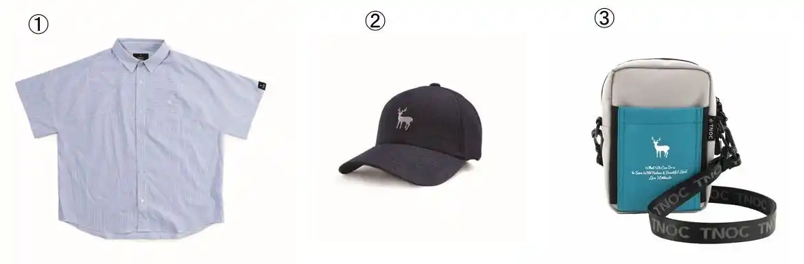 1.SHIRT BIG SHAPE SHORT SLEEVES STRIPE 8,800円2. CAP DAY 3,520円 3.NANO MESSENGER BAG 6,380円 |