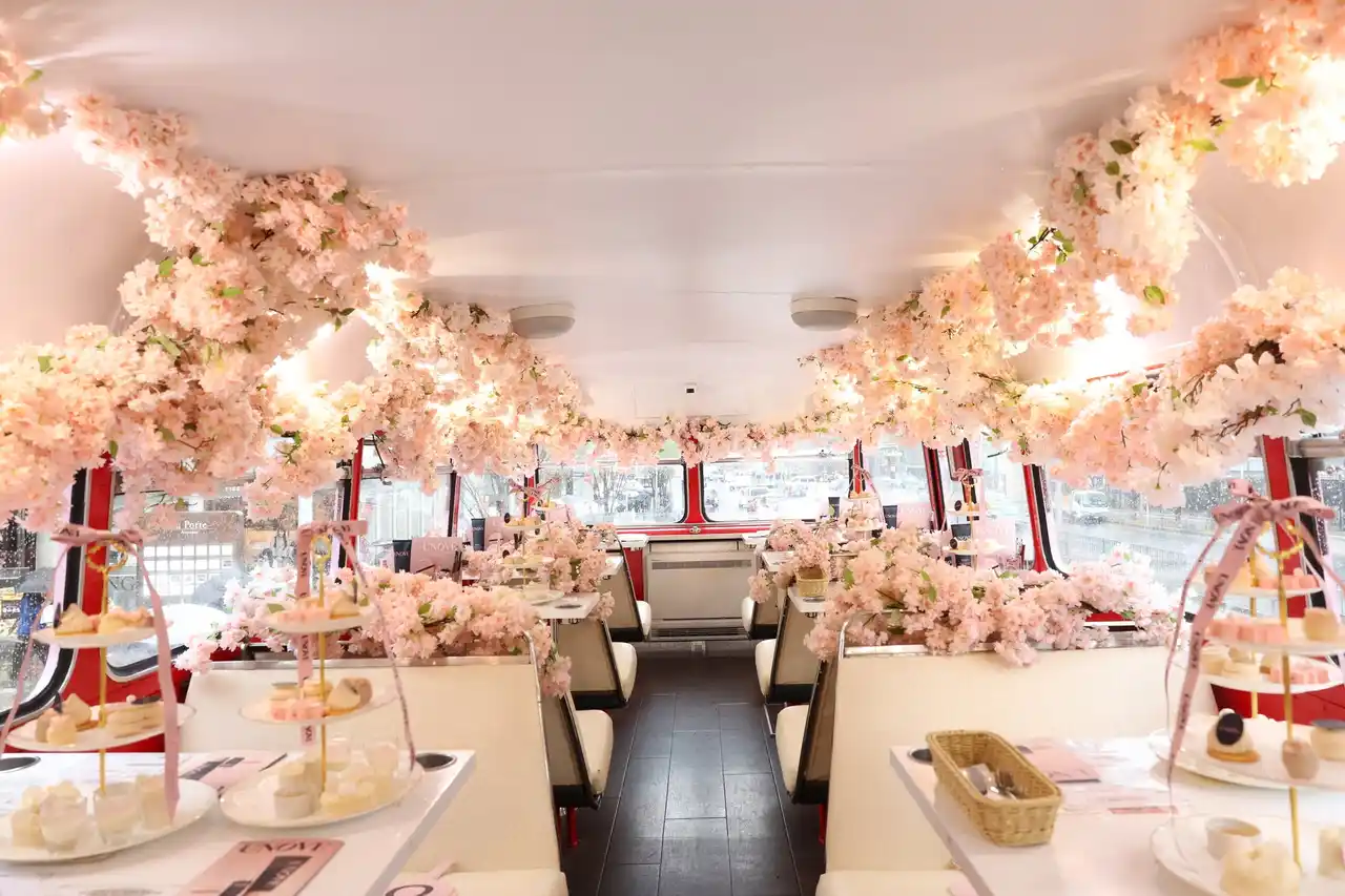 ●桜をテーマにした特別仕様のアフタヌーンティーバスを展開 |