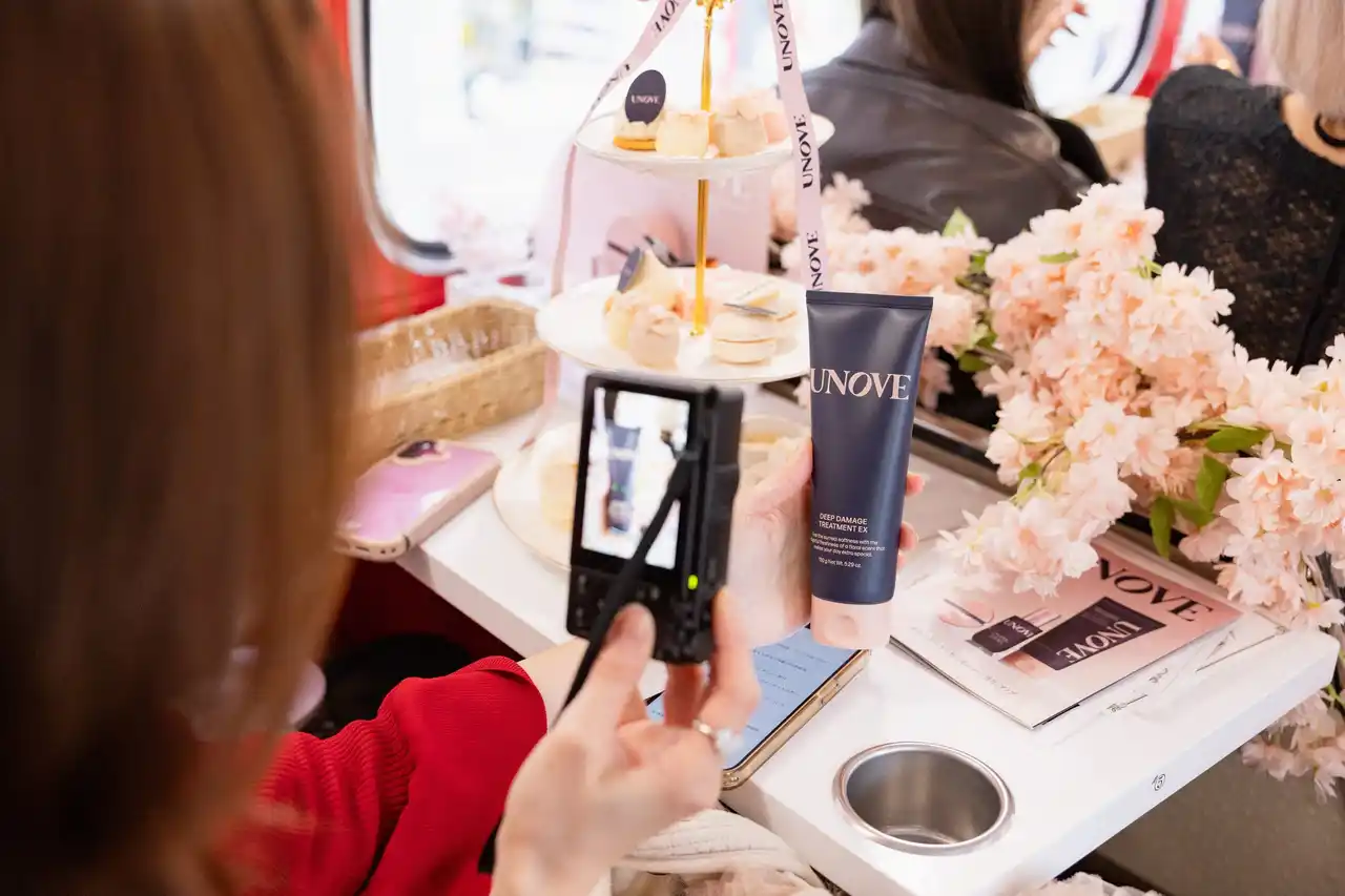 本イベントは、桜色に装飾された特別仕様のアフタヌーンティーバスに乗車し、UNOVEが提案する“至福のひととき”を五感で体験いただける移動型POP-UPとして実施いたしました。完全招待制の特別イベントとして、約300人のインフルエンサーや一般消費者の方にご参加いただき、ブランドの世界観を体感いただく機会となりました。 |