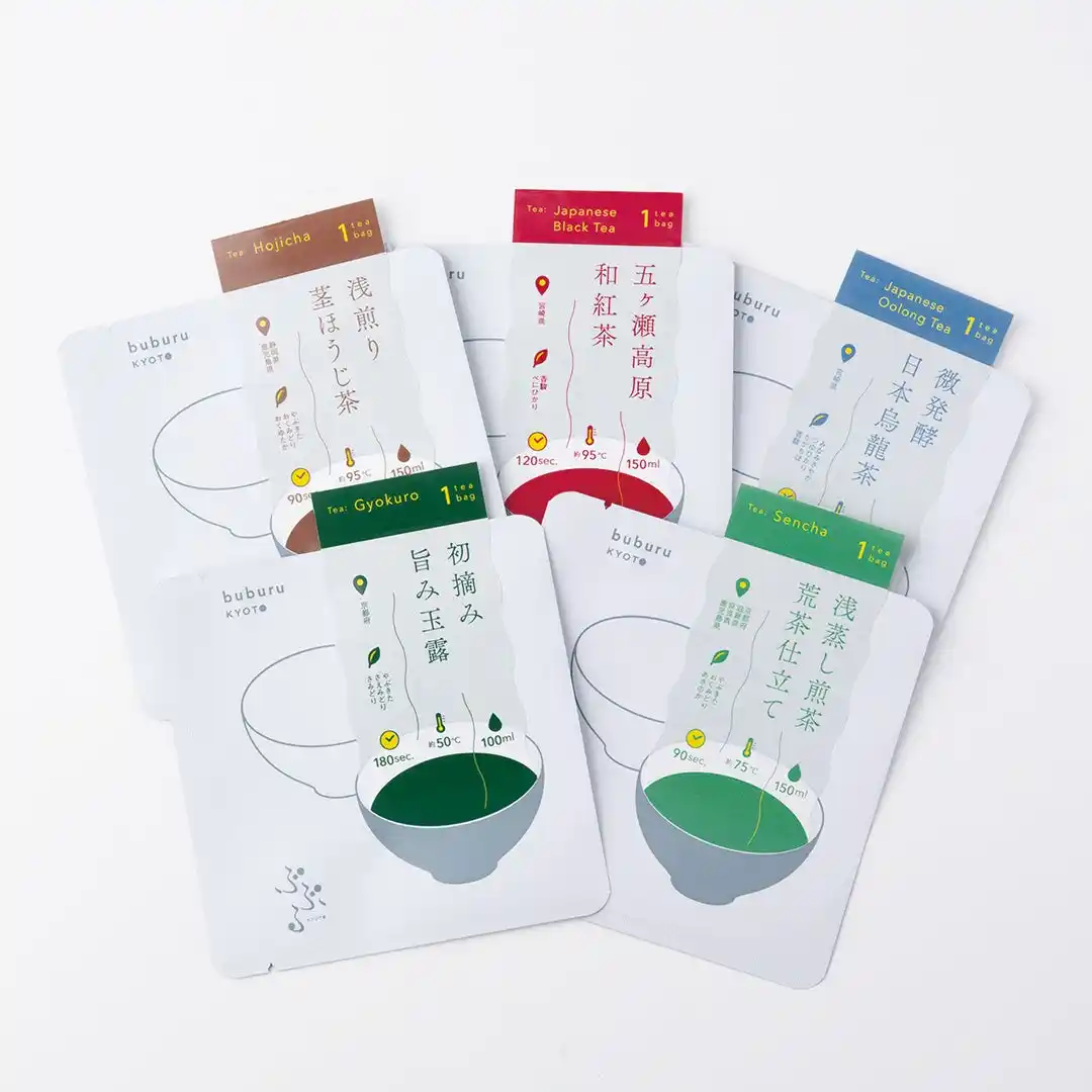 その体験を後押しするため、本シリーズでは「見つけた!好みのお茶」を可視化するタグ付けデザインを採用。1杯分ずつ手軽に楽しめる仕様は、ご自宅用にはもちろん、京都みやげやちょっとした贈りものにもおすすめです。 |