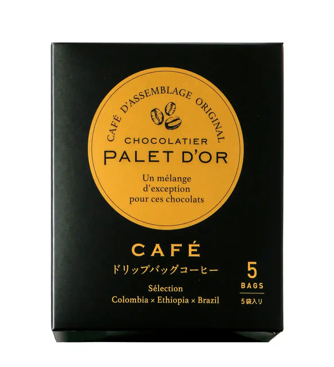 ショコラティエ パレドオールの東京と大阪のサロンで提供しているコーヒーは、チョコレートに合うように作ったブレンドコーヒーです。職人の手仕事で技術を守り続ける萩原珈琲のコーヒーは、炭火焙煎の深い味わいでチョコレートの風味と好相性。ご自宅で楽しむのはもちろん、ちょっとしたプレゼントにもできるよう、5個入箱と単品販売でご用意しています。是非ショコラやクッキーと合わせてお楽しみください。 |