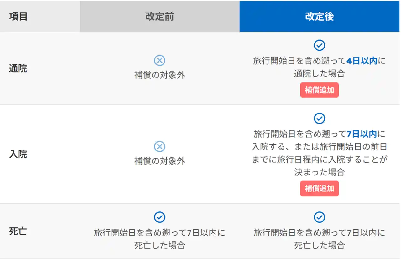 ※2 これまではペットに関するキャンセルは死亡の場合のみ補償対象でしたが、新たに入院・通院によるキャンセルも対象に追加しました。 |