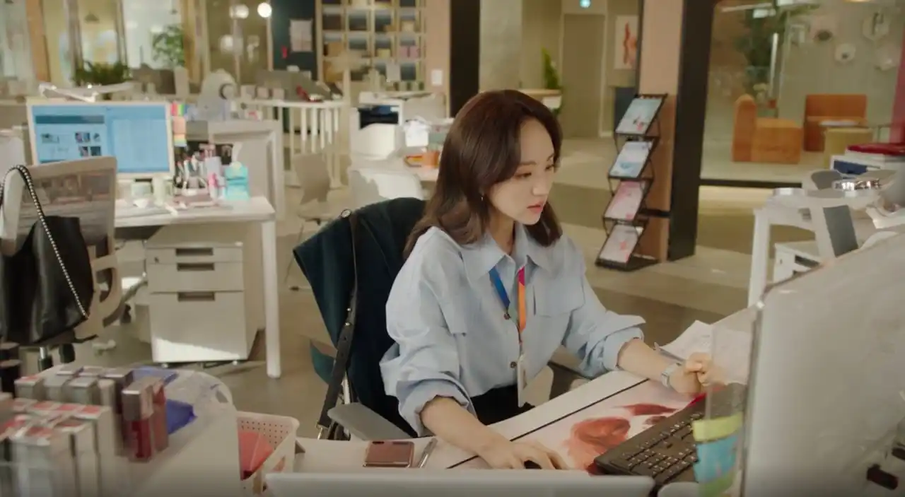 ウォン・ジナ演じるソンアのファッションは、「洗練された女性」を象徴するスタイル。ベージュ、オフホワイト、淡いブルーなどのニュアンスカラーを多用し、仕事への厳しさと後輩から慕われる優しさを両立させています。とろみ素材のブラウスや上質なコートの着こなしは、日本のオフィスでも即戦力のコーディネートです。 |