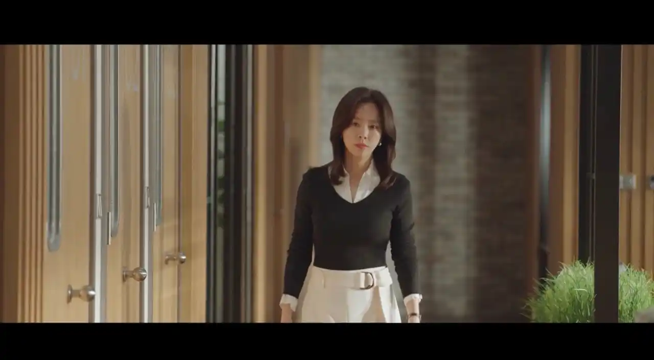 CEOカン・ジユンのファッションは、白と黒のコントラストを効かせたストイックなスタイルや、時には落ち着いたピンクベージュなど、肌馴染みの良いニュアンスカラーをボトムスに取り入るなど、冷徹さの中にわずかな「人間味」や「柔らかさ」を滲ませるコーディネート。さらに洗練された“くびれヘア”が軽やかさをプラスしています。 |
