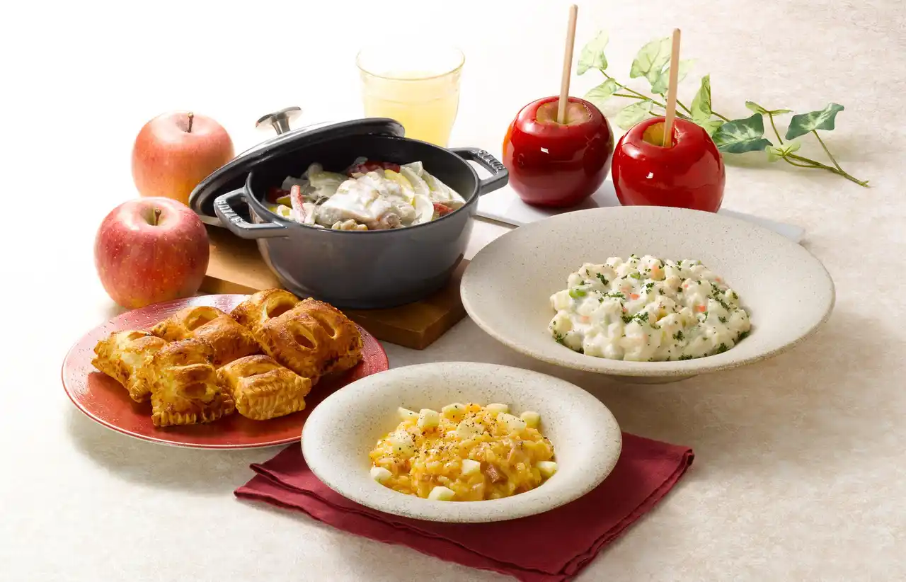 | ライブキッチンでは、十三湖産しじみを使用した「しじみラーメン」や、津軽地方に伝わる名物料理「いがめんち」、季節の食材を使用した青森の旬を味わえる「天ぷら」を出来立てで提供いたします。香りや音、熱気まで楽しめる五感型ビュッフェへと進化いたしました。さらに、青森の象徴である“りんご”を軸に、リニューアルオープン時は6種類のりんごメニューを展開。料理・デザート・ドリンクへ多面的に取り入れ、青森のりんごの魅力を余すことなく表現いたします。 | |||||||||||||||||||