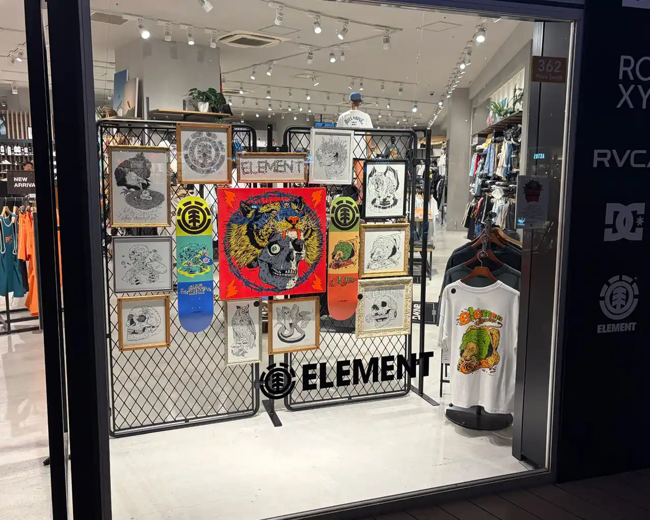 本コレクションのリリースにあわせて、BOARDRIDERS ラゾーナ川崎店にて特別なアートディスプレイを展開いたします。コラボレーションの世界観を体現したウィンドウ&インストア展開を実施していますので、ぜひご来店ください。 |