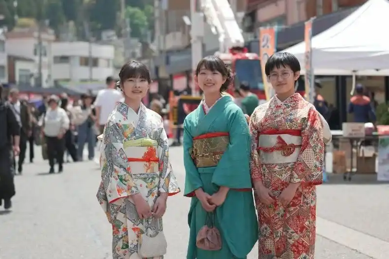 きものを着て「きものまつり」に参加できる、レンタルと着付けがセットになった体験企画の参加者を募集しています。 きものをお持ちでない方、初めての方でも安心してきもの姿でまち歩きを楽しめます。また、ご自身のきものをお持ちの方は着付けのみの利用も可能で、“タンスに眠るきものに袖を通す日”としても好評です。 |