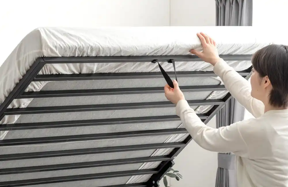 跳ね上げ時にマットレスが滑り落ちることを防ぐ落下防止ストッパーも備えています。 |