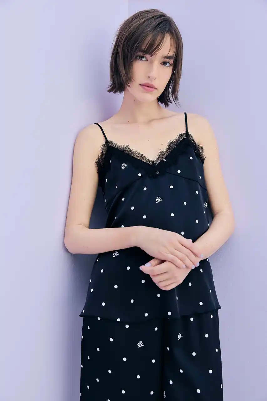 【Joel Robuchon】ドット柄サテンレースキャミソール ¥8,140 |
