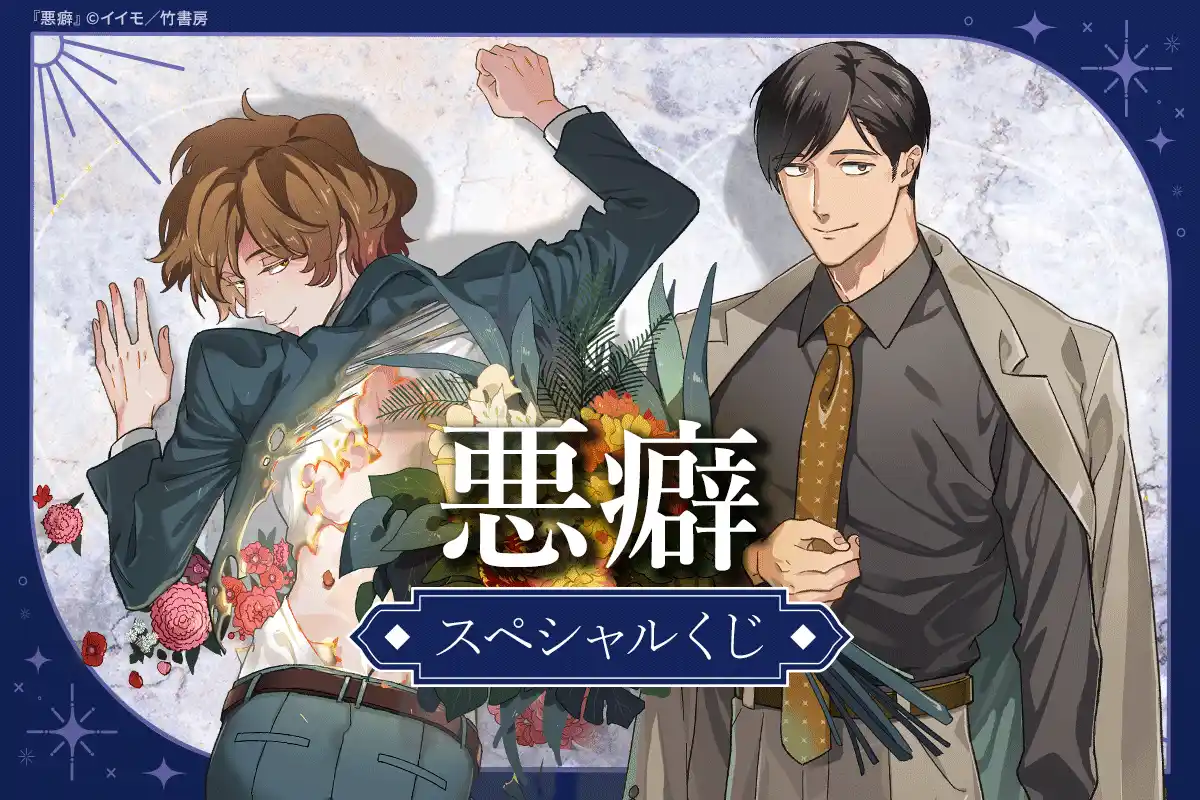 株式会社竹書房(所在地:東京都千代田区 代表取締役社長:宮田 純孝)は、BLレーベル「麗人」の人気作品『悪癖』(イイモ 著)の描きおろしイラストを使用したオンラインくじ「『悪癖』スペシャルくじ」を、オンラインくじサービス「ほしくじ」(運営:IBGメディア株式会社)にて2026年4月10日(金)より販売開始いたします。 |