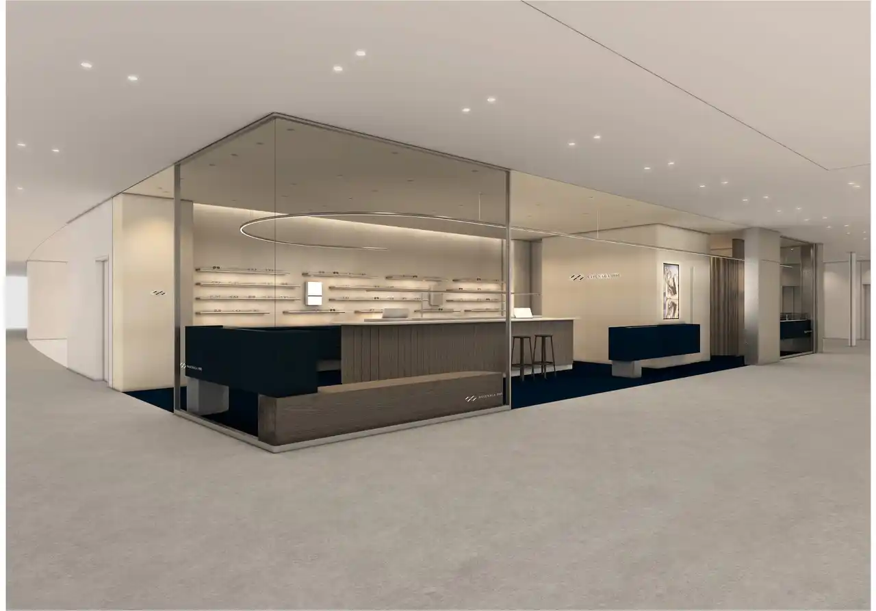地下鉄心斎橋駅直結、新たなランドマークとして誕生するクオーツ心斎橋にオープン。「歴史・技術・品質の継承」をコンセプトに構成された店内は、MASUNAGAの魅力を体験できる空間になります。昭和天皇への献上品の復刻版としてリリースされた"G.M.S.999"のシンプルかつ美しいディティールを落とし込んだオリジナル照明がシンボリックに店内を旋回しています。また、存在感のあるディスプレイシェルフは、あえて数を絞り余白を持ってフレームが並ぶ贅沢な仕様に。 |