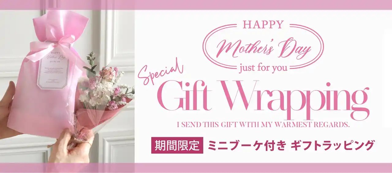 | さらに、ミニブーケ付き特別ラッピングを用意し、アパレル雑貨+ブーケという新しい形で、日頃の感謝をより印象的に伝えることが可能です。 | |||||||||||||||||||