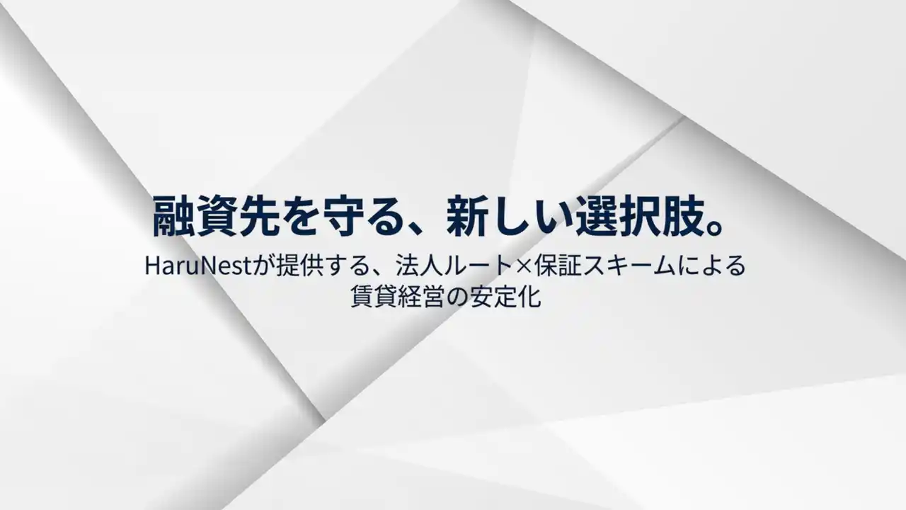私たちHaruNestは、この問題を金融機関の融資担当者様と共に解決するパートナーとして、既存物件の空室リスクを根本から解消し、融資先の収益力の向上と金融機関の債権健全性の同時回復を目指します。 |