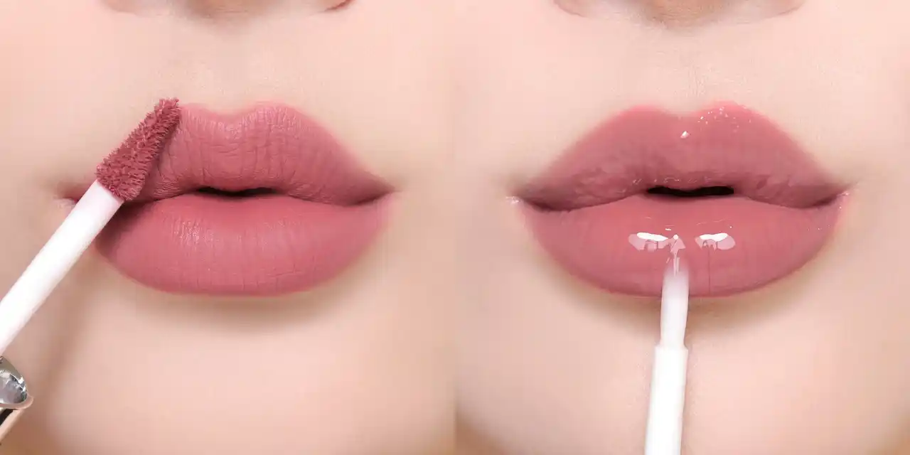 ベタつかない軽やかなつけ心地のサテンマットに仕上がるリキッドルージュに、クリアなツヤを重ねるグロウグロス。 |