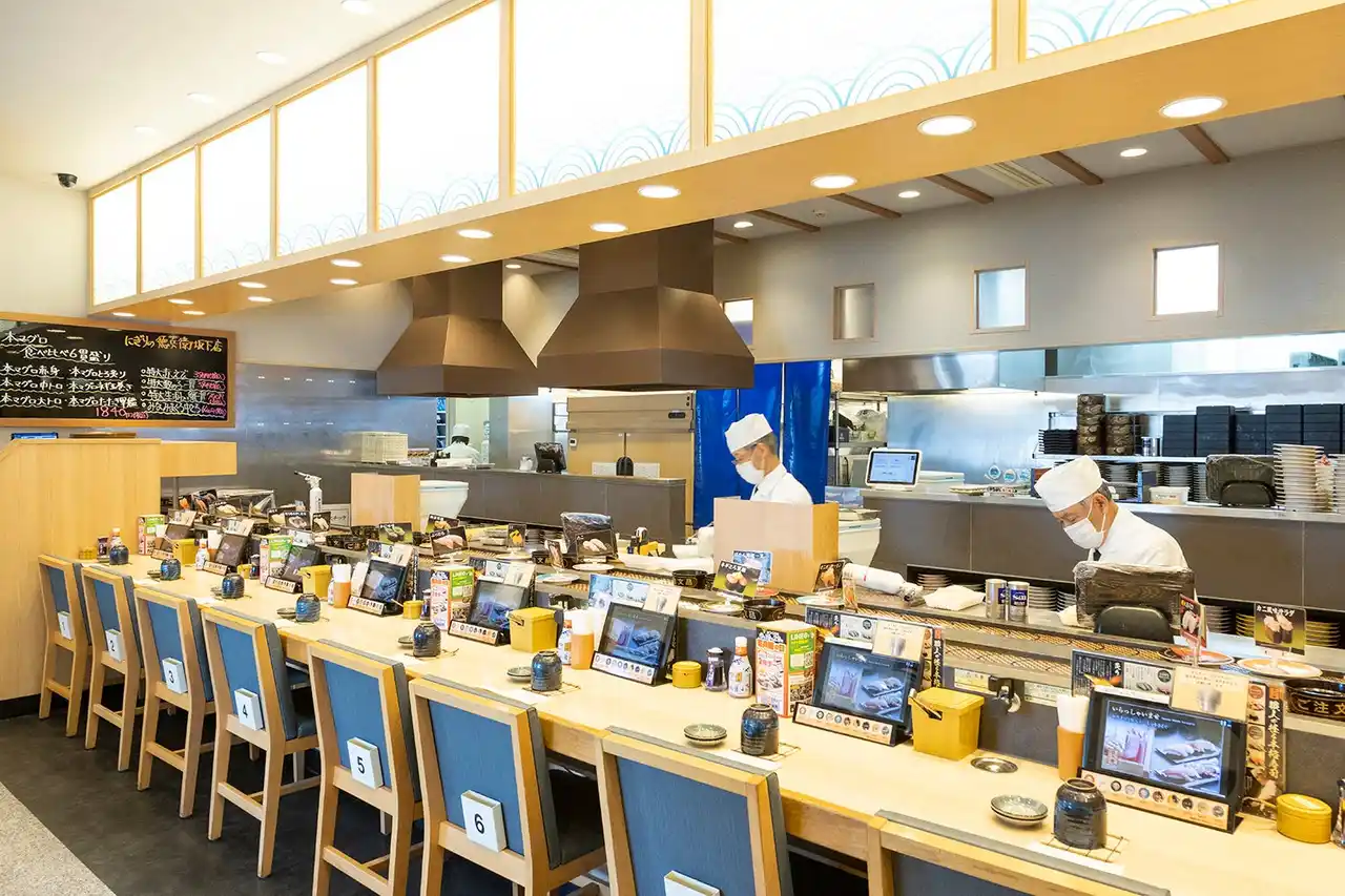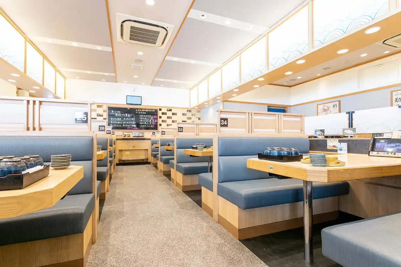 | ご家族、ご友人などグループでお食事が楽しめる広々としたボックス席と、職人が握る寿司を目の前で堪能できるカウンター席をご用意。カウンター席は開放的なオープンキッチンで、お客様の目の前で職人たちがお寿司を握るので、立ちの寿司屋の雰囲気が楽しめます。各お席には、タブレット端末を完備しており、お客様のタイミングでお気軽にご注文いただけます。 | |||||||||||||
