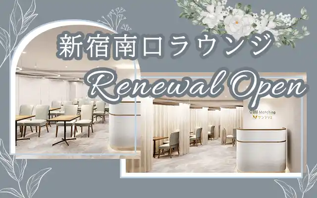 国内最多*¹の成婚数を誇る株式会社IBJ(代表取締役社長:土谷 健次郎、本社:東京都新宿区、東証プライム:6071、以下「IBJ」)が運営する婚活パーティーサービス「IBJ Matching」は、2026年4月、新宿駅東南口より徒歩1分の好立地に位置する「新宿南口ラウンジ」をリニューアルいたしました。本リニューアルでは、多くの婚活参加者が抱える「周囲からの視線が気になる」という心理的ストレスを、独自の“円形カーテン”によって解消。プライバシーが守られた空間で、より深く、誠実な対話を促進します。利便性の高い新宿エリアにおいて、IBJは今後も、一組でも多くの幸せな出会いの創出に向け、快適で質の高いサービスの提供に努めてまいります。 |