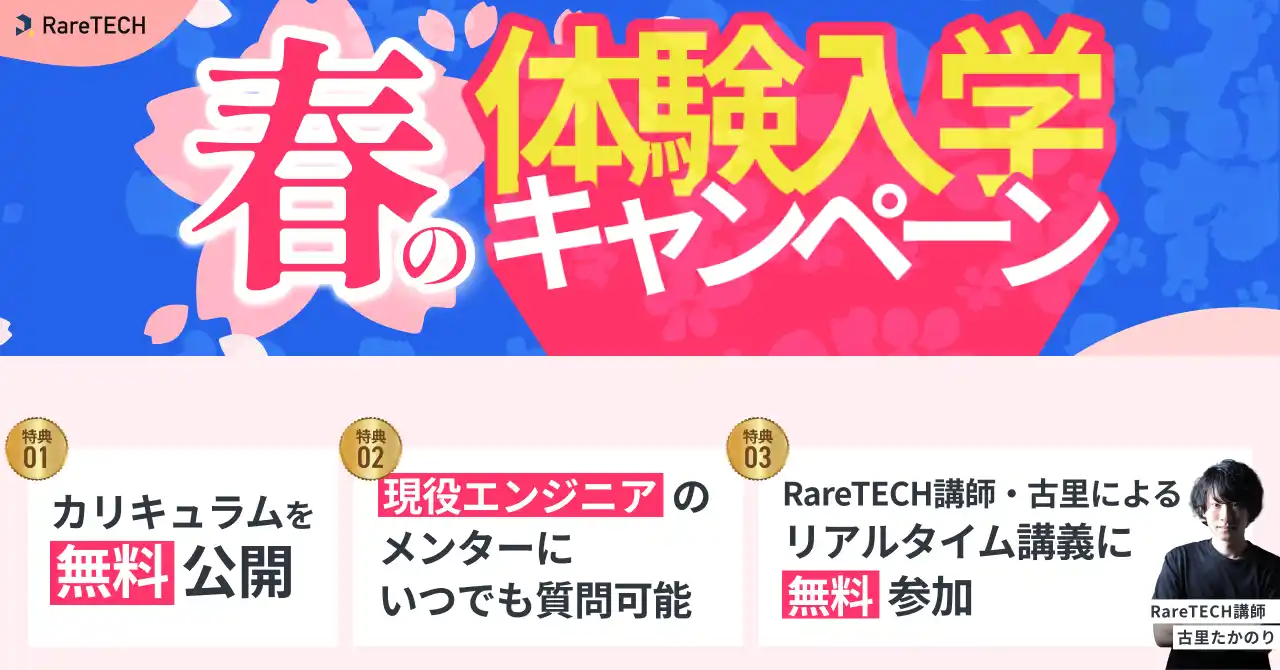 ▼ RareTECH「春の体験入学キャンペーン」の詳細はこちら |