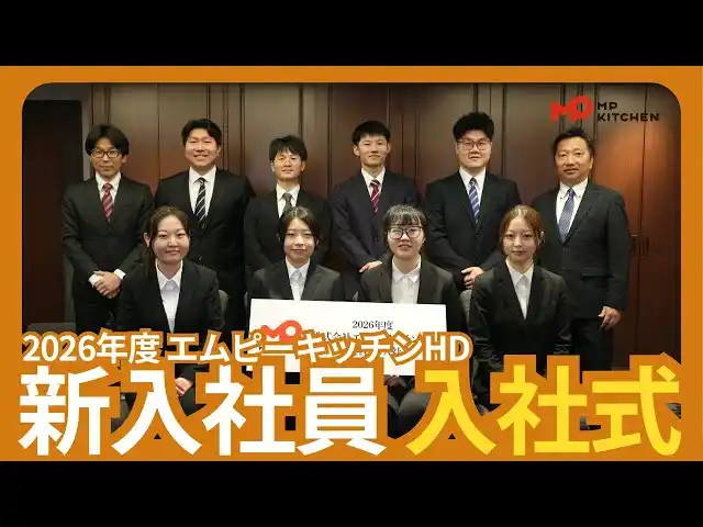 | 『つけ麺専門店 三田製麺所』や『薄皮餃子専門 渋谷餃子』などを運営する株式会社エムピーキッチンホールディングス(本社:東京都渋谷区、代表取締役CEO:鹿中 一志)は、2026年4月1日(水)に2026年度入社式を執り行いました。あわせて、当日の様子をまとめたダイジェスト動画を、公式YouTubeチャンネル『MPキッチンTV』にて公開しております。 | |||