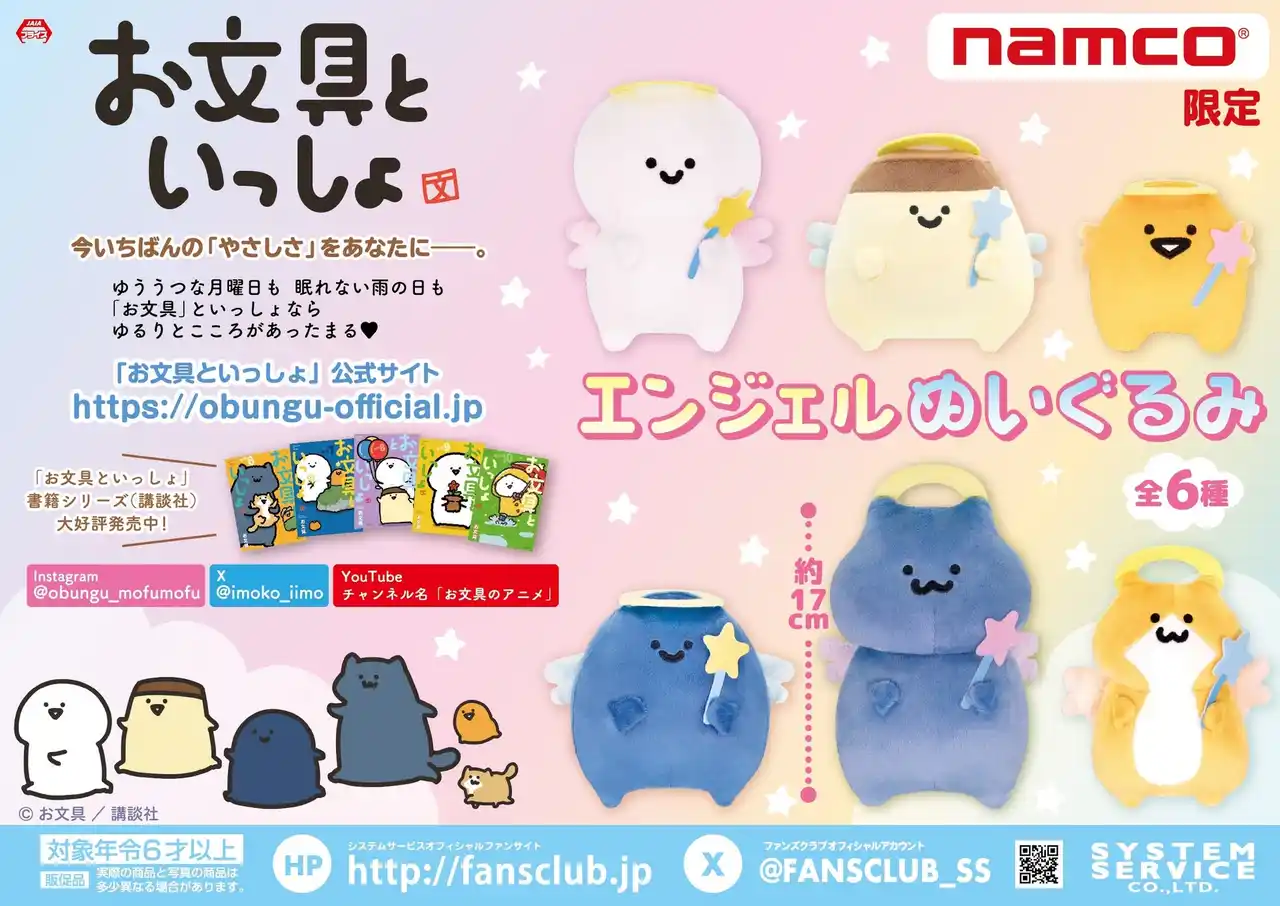 【株式会社バンダイナムコエクスペリエンス】 WEBアニメ累計再生数3億回超え!SNS発の人気キャラが限定プライズに 『お文具といっしょ』からエンジェル姿のぬいぐるみがナムコに登場 2026年4月17日(金)より全国のナムコ限定で順次展開!
