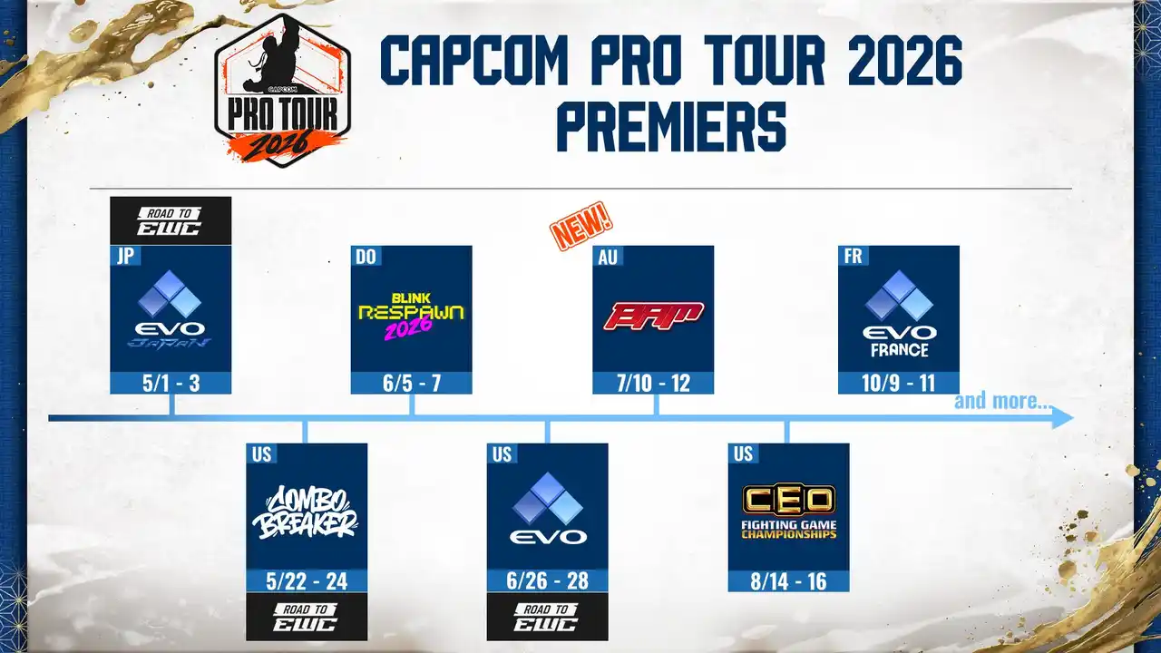 | 「CAPCOM Pro Tour 2026 World Warrior」は世界各地域のトーナメントオーガナイザーによって数か月にわたり複数回開催されます。 | |||