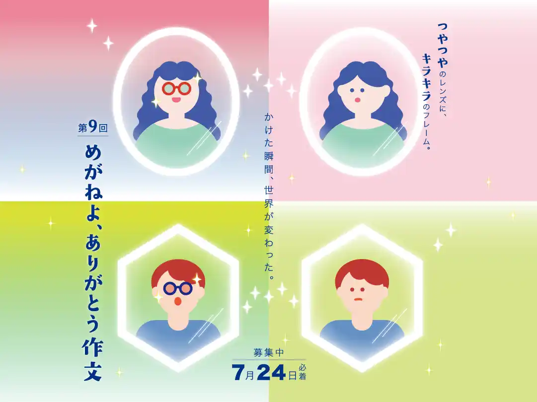 一般社団法人福井県眼鏡協会は、第9回「めがねよ、ありがとう作文」の募集を開始しました。 めがねにまつわるエピソードや、日頃お世話になっているめがねへの感謝の気持ちを綴った作文を広く募集します。受賞作品は8月下旬にめがねフェス公式WEBサイトにて発表予定です。 |