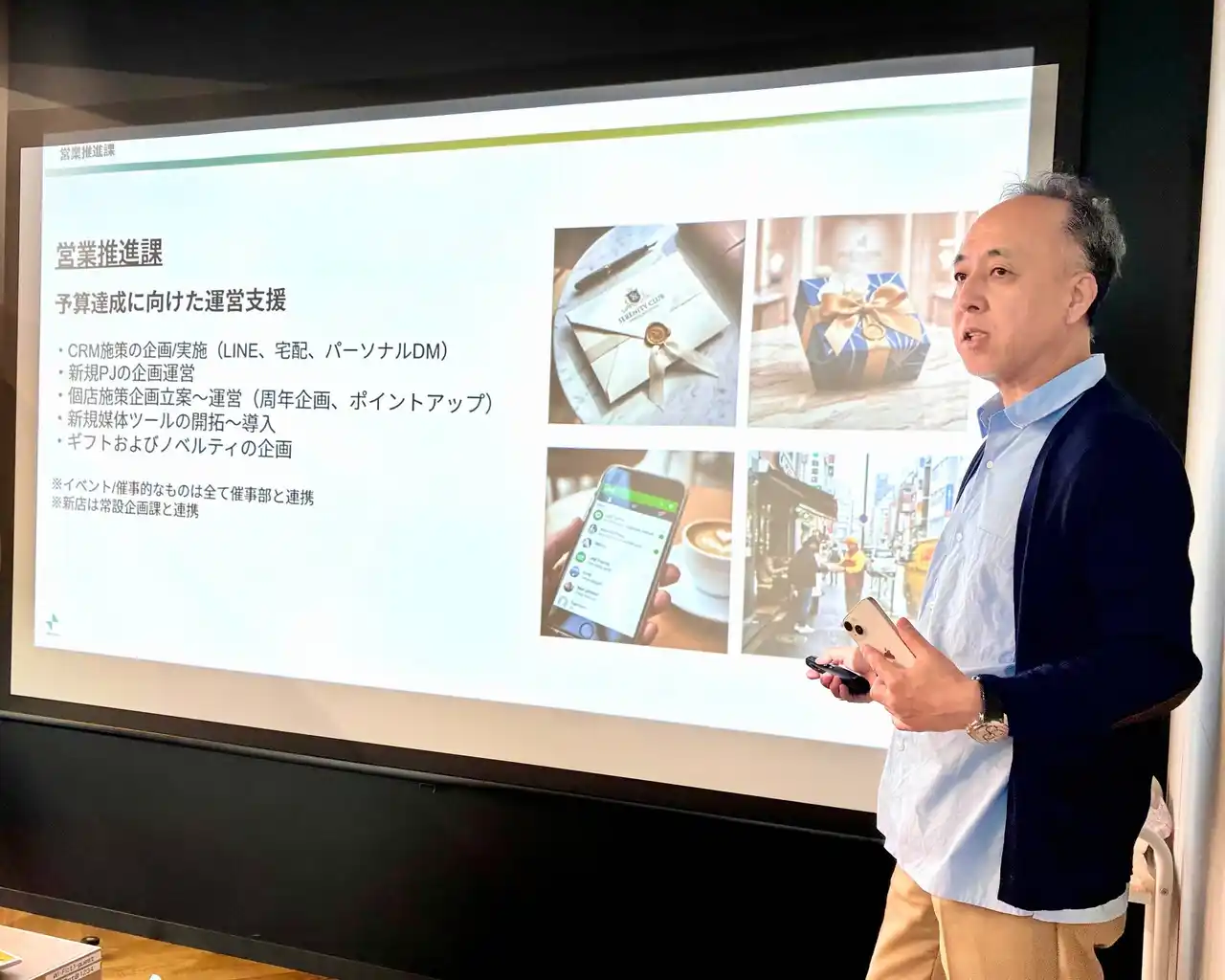 まず、管理部より弊社の生い立ちやMVV、ブランドプロミス「想いによりそうパートナー(以下「想パ」)」などの会社説明をいたしました。また、社長や部長陣から各部署の概要や各部のMVVに対する想いをご説明し、全社理解をより深めました。 |