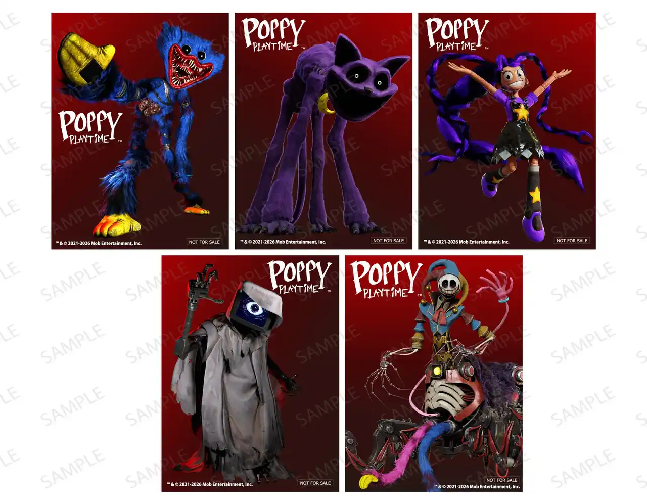 会期中にPOP UP STOREにて、Poppy Playtimeの商品を税込3,300円お買い上げごとに【オリジナルクリアカード(全5種)】を絵柄ランダムで1枚プレゼント! |