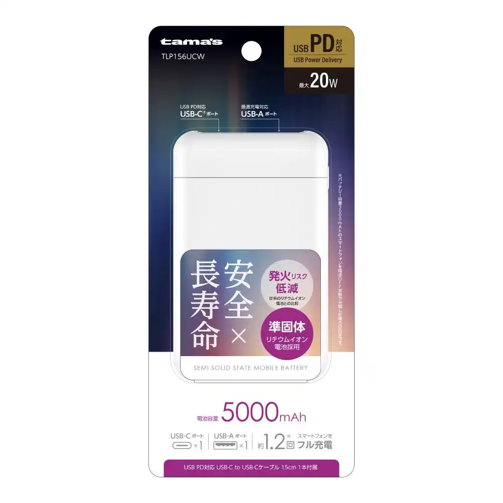 TLP156UCW:PD20W 準固体電池 モバイルバッテリー 5000 ホワイト |