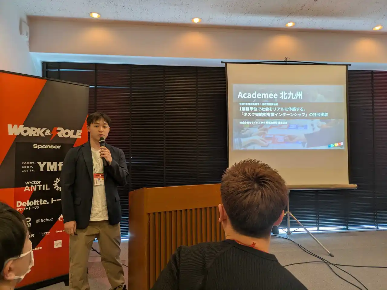 ROLE」内のスタートアップ支援プログラム成果ピッチに登壇し、令和7年度に実施した「「Z世代を対象にしたゆるやかなコミュニティの創出」に関する成果を発表いたしました。 ミライクルラボは、福岡県北九州市が推進する「企業変革・スタートアップ・グロースサポート事業」における「イノベーション支援プログラム(行政課題解決枠)」として、支援対象企業に採択されております。支援期間は、令和7年度から令和8年度までの2年間を予定しています。 https://workandrole.jp/pitch/startup/#pitch |