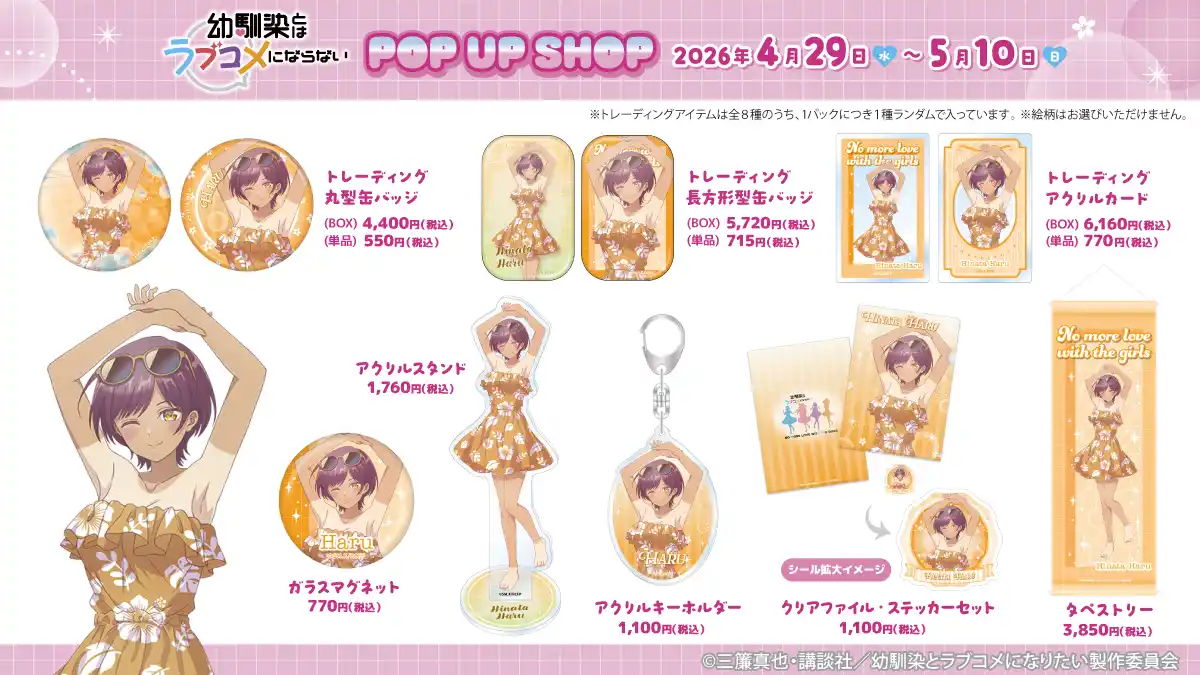 株式会社パルック(本社 : 東京都台東区、代表取締役: 山口 茂昭)は、講談社の人気コミックを原作としたTVアニメ『幼馴染とはラブコメにならない』の POP UP SHOP をボークス秋葉原ホビー天国2 1F 特設コーナーにて期間限定開催いたします。本イベントでは「リゾートファッション」をテーマに、新規描き下ろしイラストを使用したオリジナルグッズを多数展開します。ぜひこの機会にお立ち寄りください!