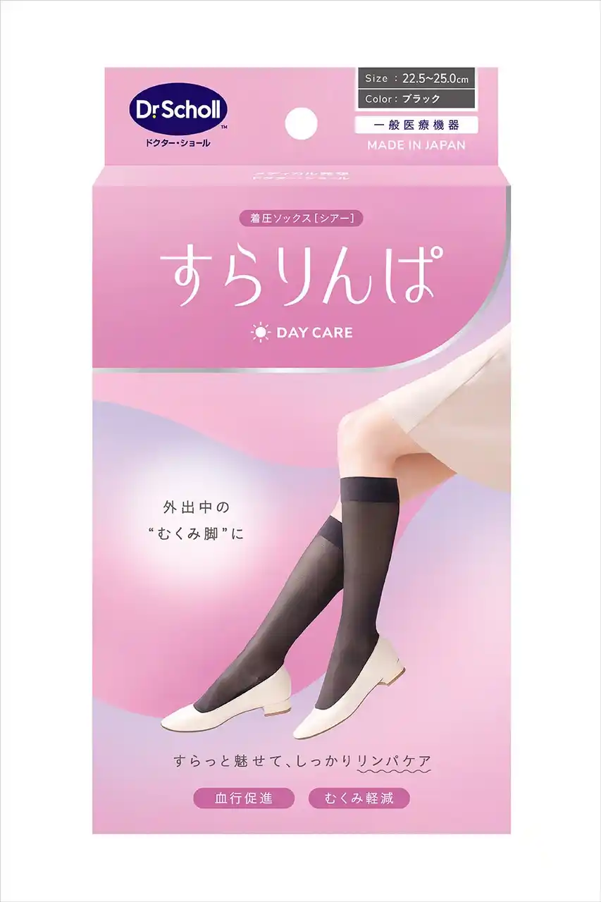 | フットケア専門ブランド「 Dr.Scholl(ドクター・ショール)」は、昼はすらっと魅せてケアする『すらりんぱ』、夜はゆるりと履いてケアする『ゆるりんぱ』を、2026年3月より全国で発売中です。 |