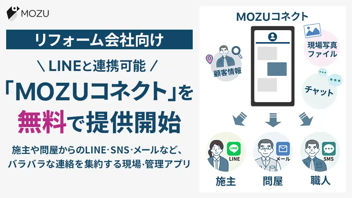 業界初の「デジタル問屋」MOZUオーダーを運営するMOZU株式会社(本社:東京都港区、代表取締役:野口 真平)は、現場管理アプリ「MOZUコネクト」を無料で提供を開始。 |