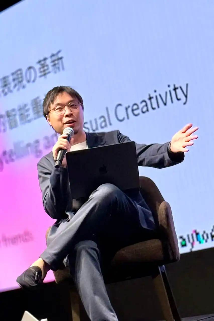 スムージースタジオからは、AIクリエイティブ事業部 クリエイティブディレクターのクー・ジンヤンが、午前はワークショップ、午後はセッションを行いました。 |