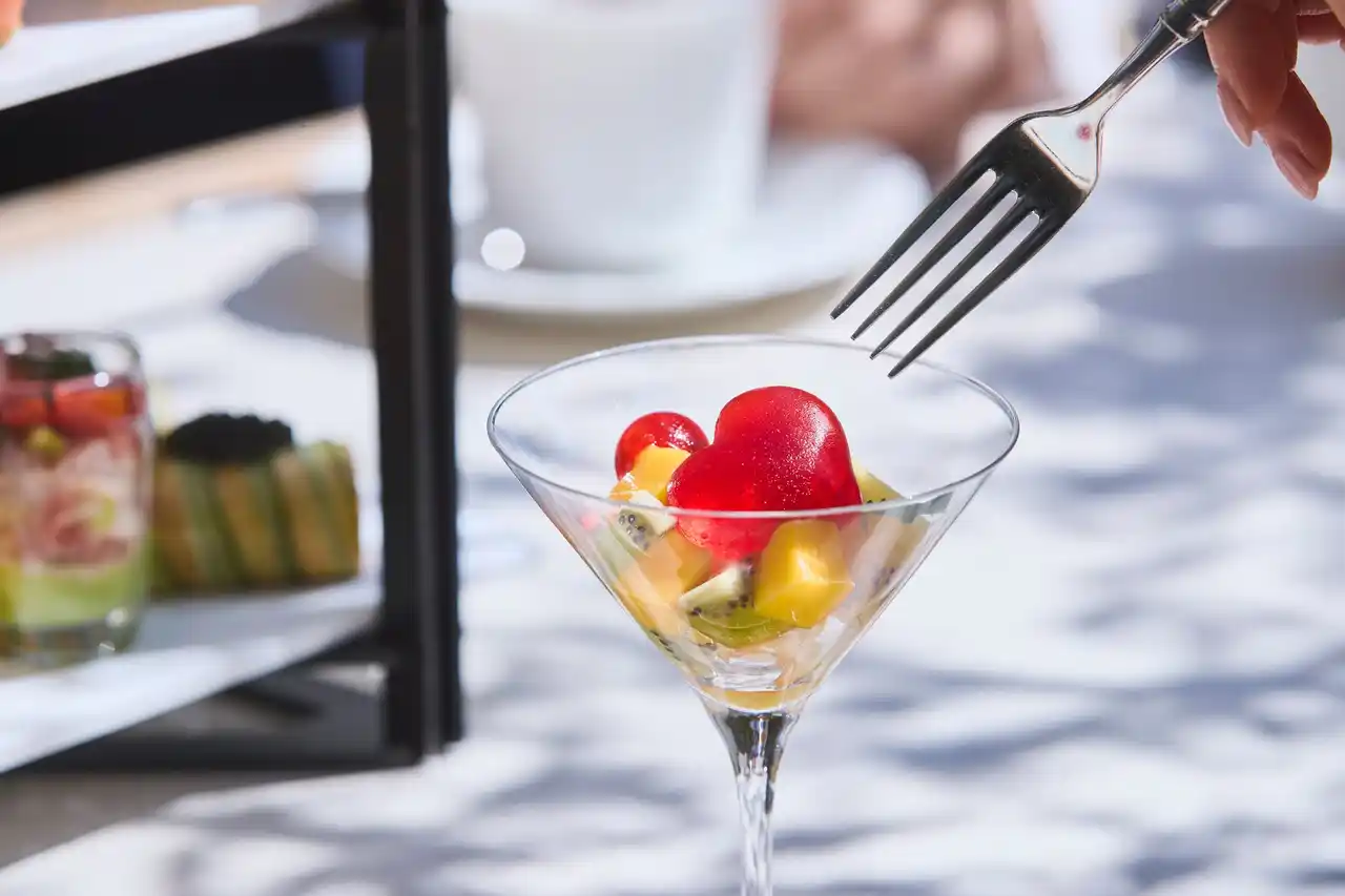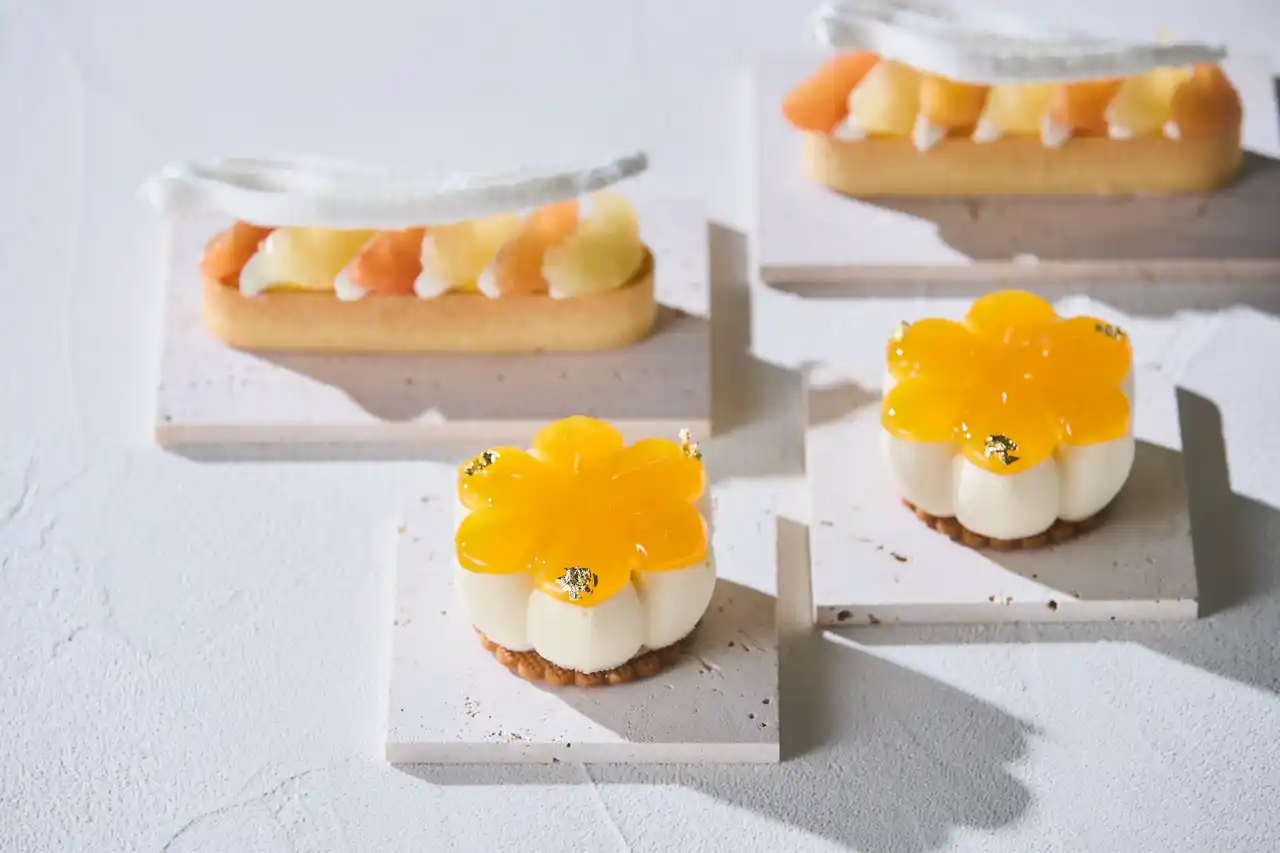 マンゴーとパッションフルーツのタルトや、ジャスミンが香るヴェリーヌ、アールグレイと合わせたシブーストなど、一口ごとに異なる香りと食感が広がり、初夏の余韻を感じさせます。さらに、ココナッツやトロピカルフルーツを取り入れたパフェなど、ユニークなスイーツが揃います。 |