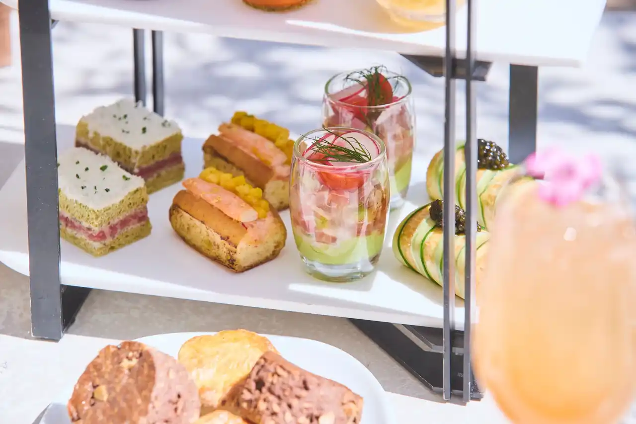 初夏の陽光を思わせる、鮮やかなマンゴーの甘い香りに包まれる、この時季限定のアフタヌーンティー。エグゼクティブ ペストリーシェフ ハーフィス・ラザリ率いるチームが手がけるスイーツは、主役のマンゴーにパッションフルーツや柚子、ジャスミンなどのエッセンスを重ね、その濃厚な甘みと瑞々しさを引き立てた華やかなラインナップに仕上げました。 |