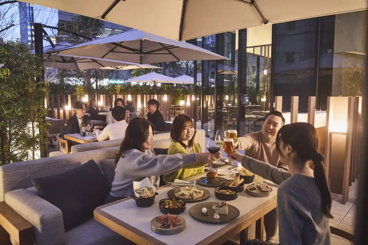 春は、歓送迎会をはじめ、さまざまな集まりのシーンで開放的なテラスが活躍します。心地よい風と夕暮れ時の柔らかな光に包まれた空間で、フリーフローのドリンクと気軽にシェアできるバイツをお楽しみいただければ、会話も自然と弾むひとときに。また、ゆったりとした夕暮れ時には、アペリティフを愉しむのにも最適。日が沈み、穏やかな風を感じながらお好みのドリンクを片手に、シェフのスペシャリテを味わうひとときは、春から秋にかけての優雅な夕べにぴったり。米粉を使ったこだわりの生地で、ご注文を受けてから一枚ずつ焼き上げる「フラットブレッド」、ペストリーシェフが贈る「バスクチーズケーキ」などを味わいながら、贅沢なトワイライトタイムをお楽しみいただけます。 |