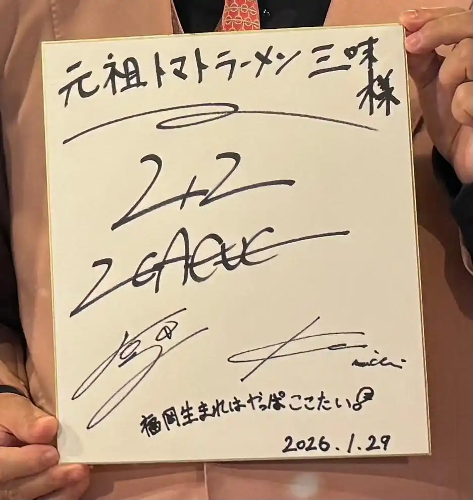 | 2025/2/1放送【ちょっと福岡行ってきました!】にて堀未央奈さん・森香澄さんにご来店、元祖トマトラーメンを弊社スタッフと一緒に作って頂き、一緒にご試食し「美味しい」と絶賛していただいた店舗です。 | |||||||||||||||||||