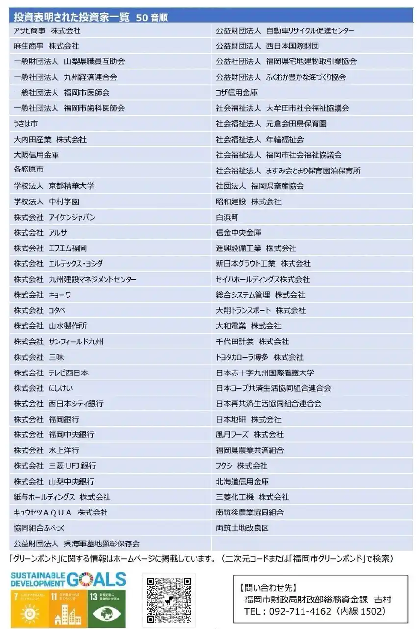 | 今回の掲載でも注目されている当社のESG経営の一環として、福岡市が発行する「福岡市2022年度第8回公募公債(グリーンボンド)」への投資を機関投資家様と実施いたしました。 | |||||||||||||||||||