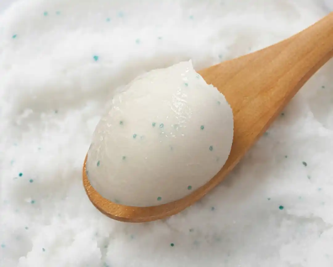 | スクラブ製品に多いジャータイプ(広口容器)特有の「水が入って不衛生」「開け閉めが面倒」といった悩みに着目。最後まで中身に触れず、お風呂場でも衛生的に使えるチューブタイプを採用しました。濡れた手でも使いやすい、こだわりのスマート設計です。 | ||||||||||||||