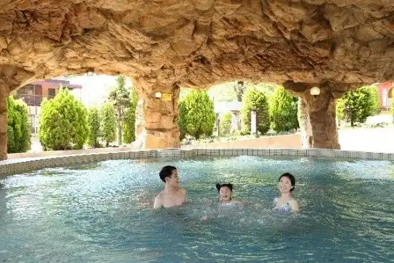 【スプリングハウス】岩がごつごつした秘境の温泉を想わせる温浴スポットは、お子様はもちろん、お父さん、お母さんの遊び疲れた体を優しく温めてくれます。 |