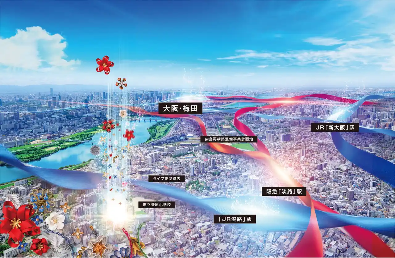 阪急京都線・千里線の約7.1kmを高架化する「阪急京都線・千里線連続立体交差事業」や淡路エリアと新大阪駅を結ぶ幹線道路「都市計画道路 歌島豊里線」の整備等さらに暮らしやすく快適な街へ変貌を遂げようとしています。 |